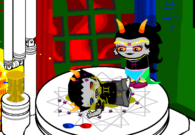 KARKAT: HE SAYS HE'S WORKING ON TRACING THE ORIGIN OF THIS RIDICULOUS FUCKING CONNIPTION AND SAYING SOMETHING INFLAMMATORY, GOD. HOW DOES THIS HAVE TO TAKE SOME LESSON FROM THAT, WHAT IS A DISTRACTION.
