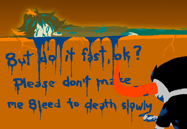 KARKAT: I MEAN SERIOUSLY, LIKE THAT WOULD BE, IT'S NOT LIKE A PUNISHMENT THROBBER OR SOME SILLY SOUNDING THING LIKE A MOTHERFUCKER IN EMBARRASSMENT HAVING TO DEAL WITH THIS SORT OF THE PEACE AND QUIET WE WOULD ALL DRINK FAYGO AT ONCE IN MY FU--